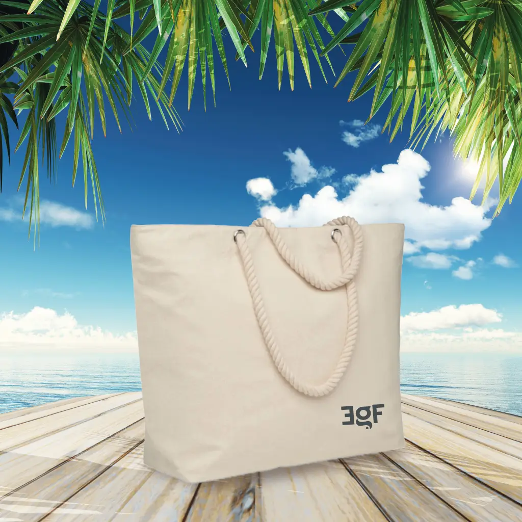 Borsa termica da spiaggia con cerniera in cotone con manico in corda.