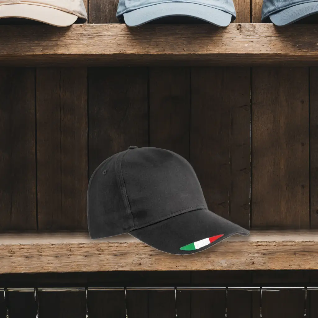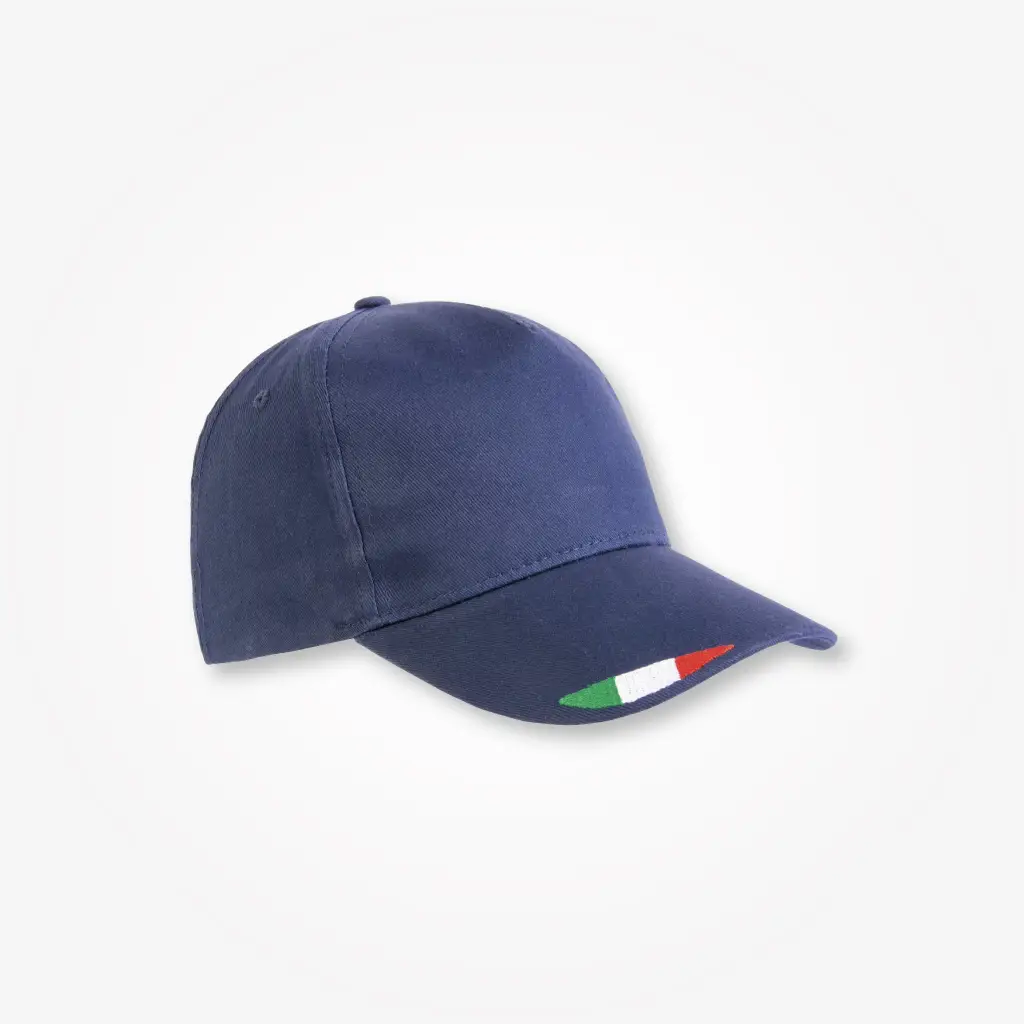 Cappellino in cotone, con ricamo tricolore sulla visiera.