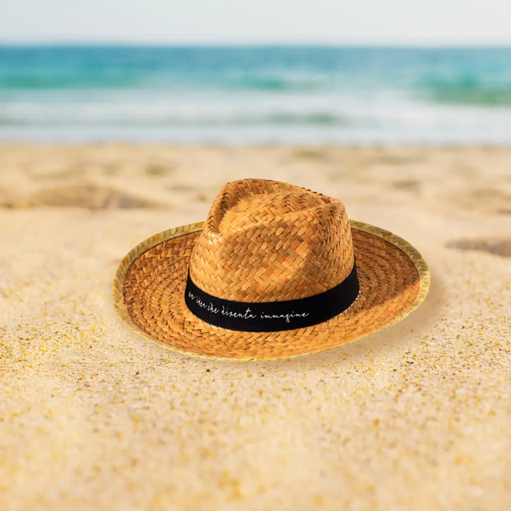 Cappello in paglia con fascia elastica 3 cm personalizzabile.