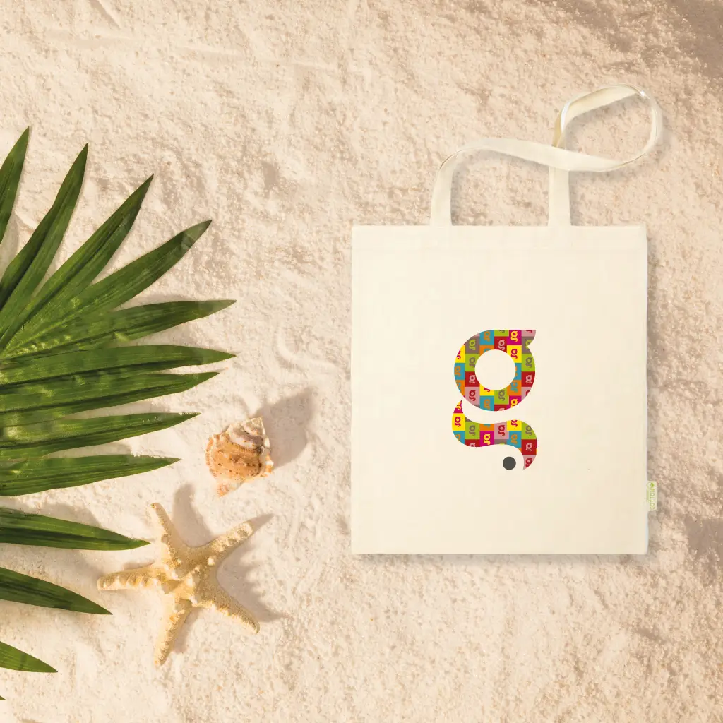 Shopper in materiale di cotone organico naturale al 100% da 120 gr/m².