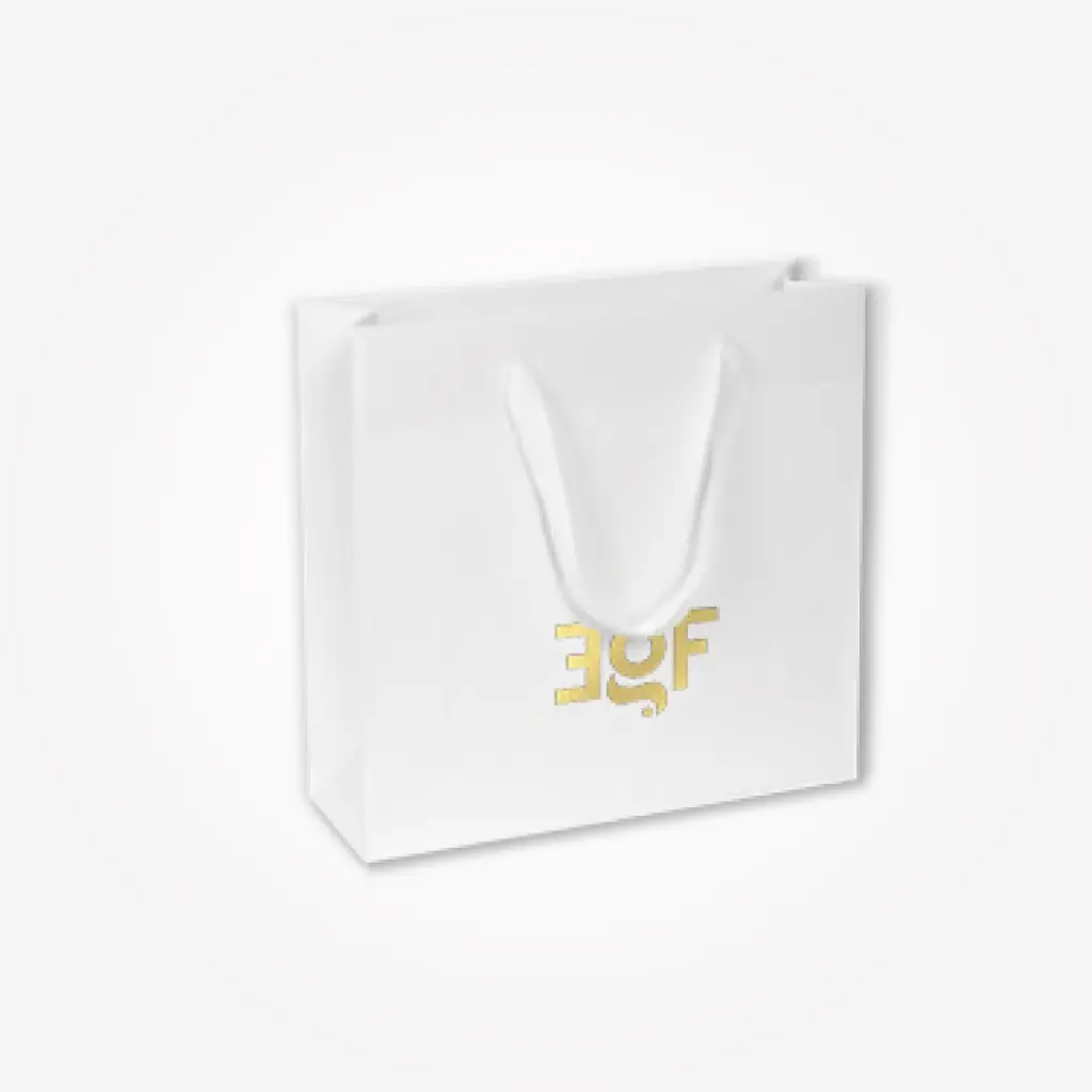 COLORE BIANCO : carta kraft bianco, manici in fettuccia quadra bianca.