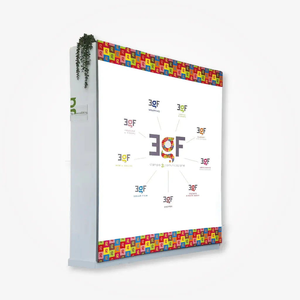 Prezzi compresivi di struttura in alluminio, impianto led, trasformatore e assemblaggio telo.