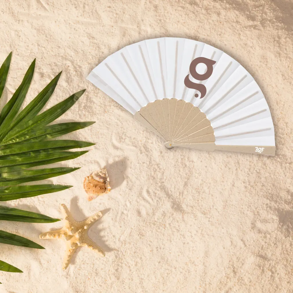 Ventaglio con aste in fibra di bambù e tessuto RPET.